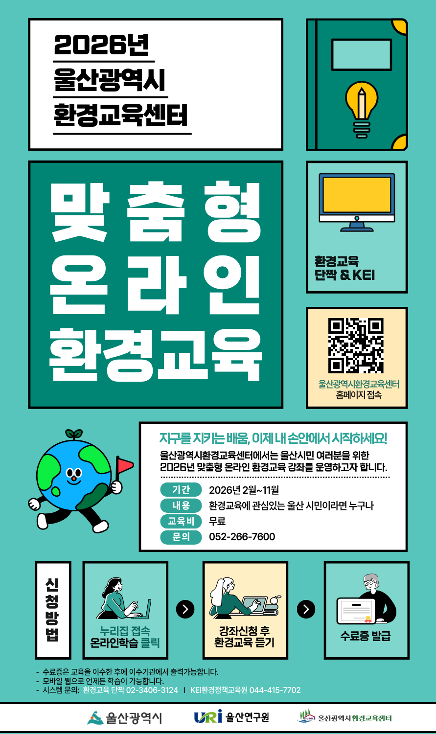 라. 신청방법: 울산환경교육센터 홈페이지 방문 후, 원하는 교육 플랫폼(환경교육단짝 또는 KEI 환경정책교육원)을 선택하여 온라인 수강 신청