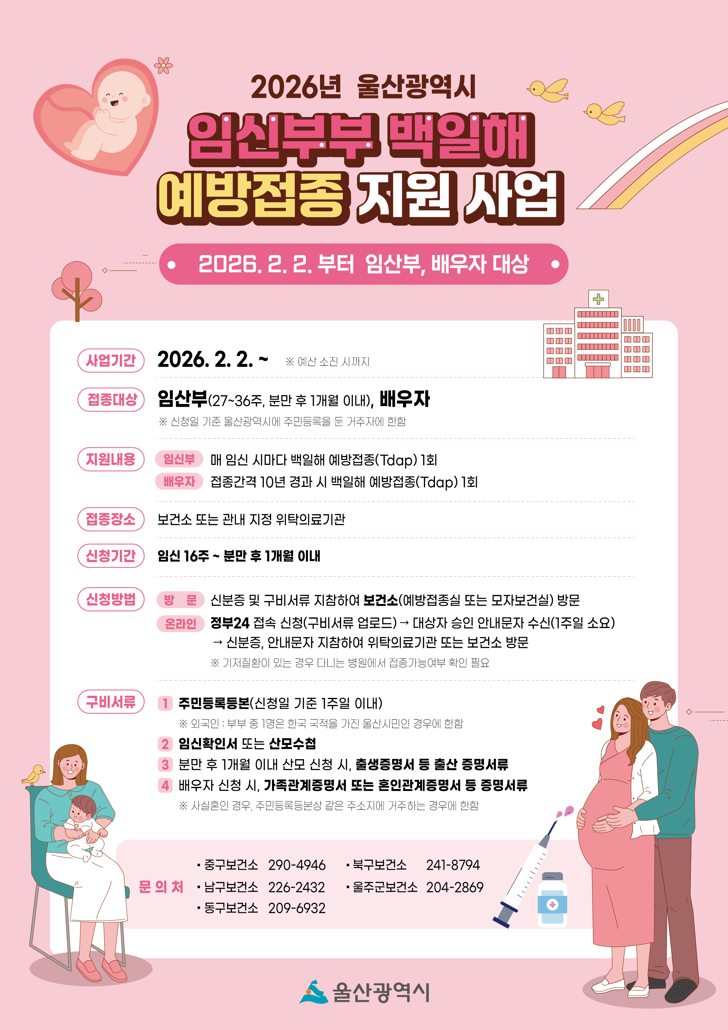 2026년 울산광역시 - 임신부부 백일해 예방접종 지원 사업 -