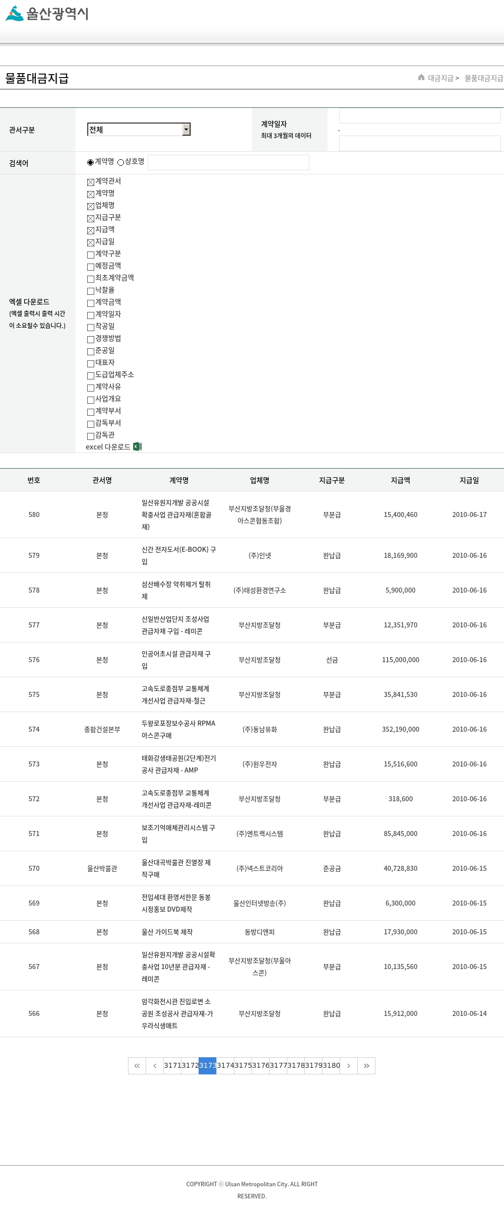 | 660 | 본청 | 신항만부두 연결도로 개설공사 관급자재-철근 | 부산지방조달청 | 완납급 | 18,656,760 | 2010-06-28 |
