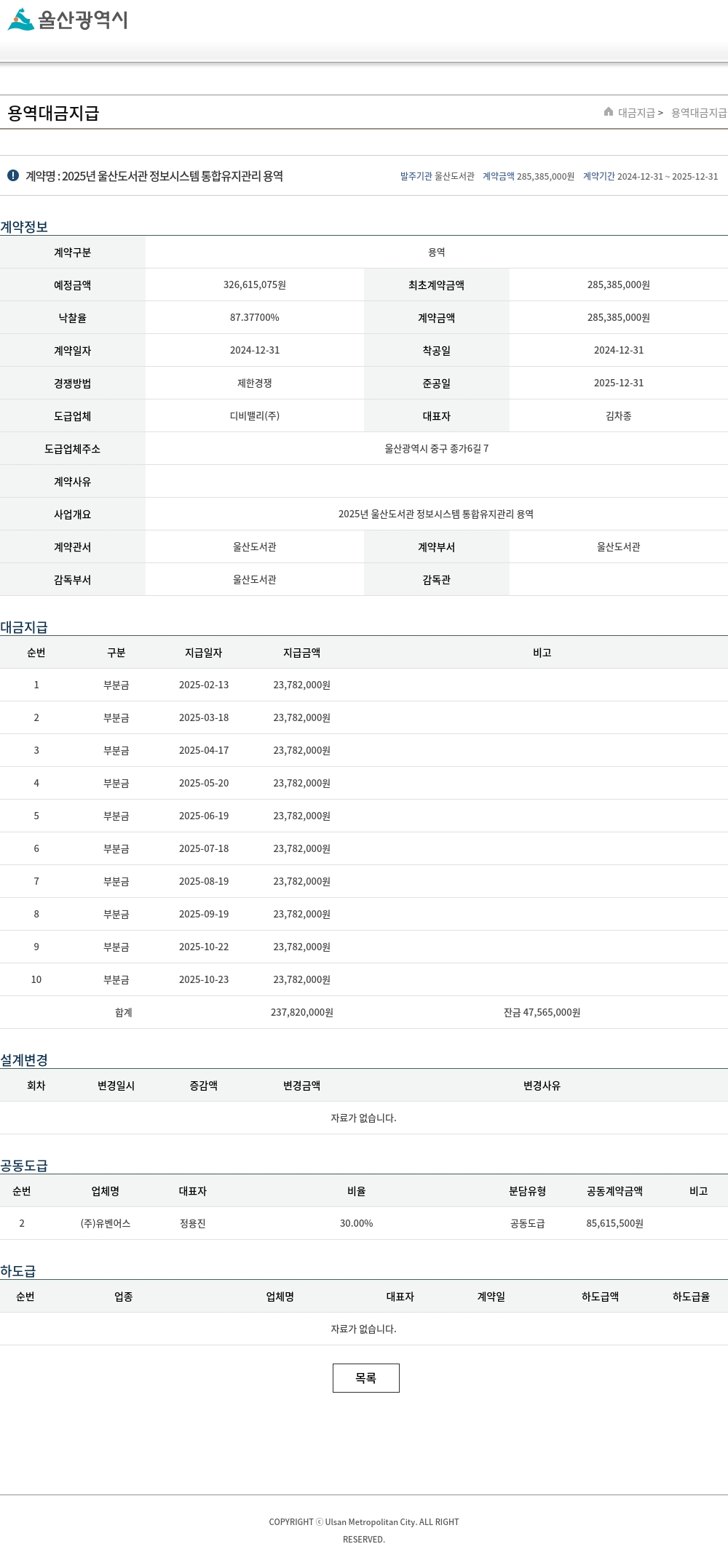 계약명 : 2025년 울산도서관 정보시스템 통합유지관리 용역
