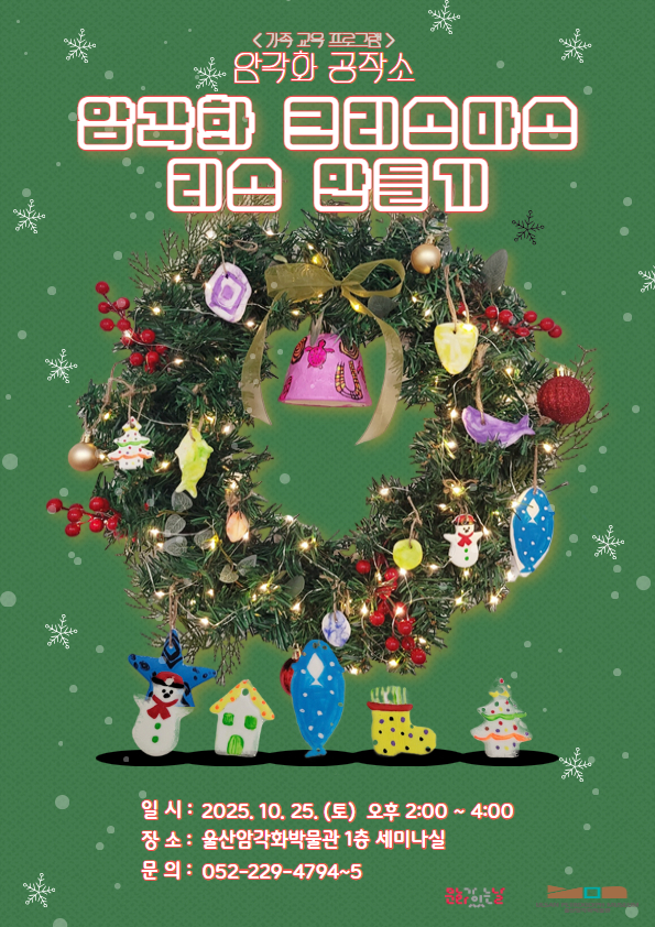 2025년 10월 울산암각화박물관 가족 교육프로그램 <암각화 공작소> 참여자 모집 10월 암각화 공작소는 ‘암각화 크리스마스 리스 만들기’ 체험입니다.