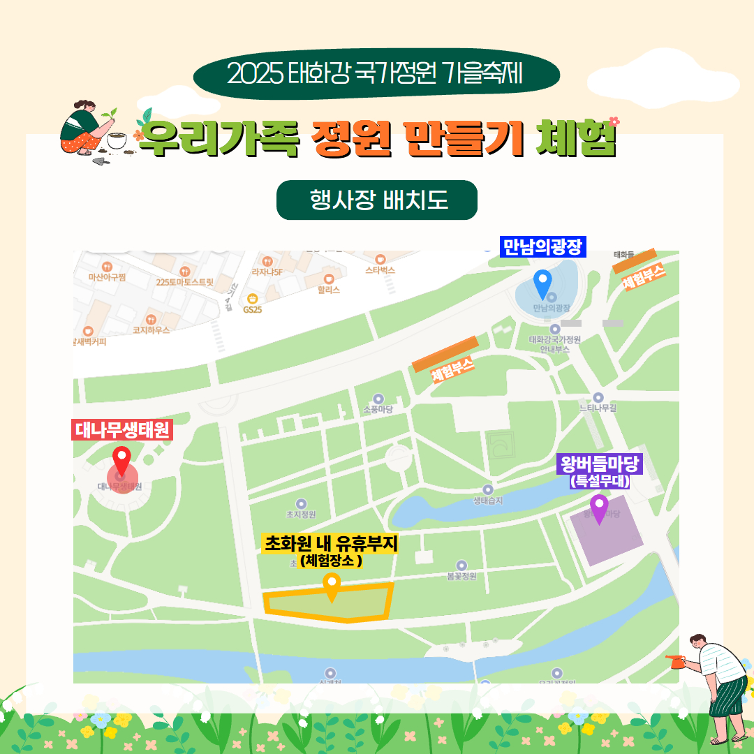태화강 국가정원 가을축제에서 우리가족 정원 만들기 체험행사가 다음과 같이 진행될 예정입니다.
