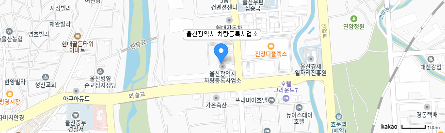 울산광역시 차량등록사업소로 찾아 오시는 길입니다. 로드뷰길찾기지도 크게 보기 찾아오시는 길 주소 [44249] 울산광역시 북구 진장유통로 5(진장동 286-3번지) 대표전화 052-229-6169 (전화안내창구), 052-120 (해울이콜센터), (업무시간 : 평일 9시부터 18시까지)