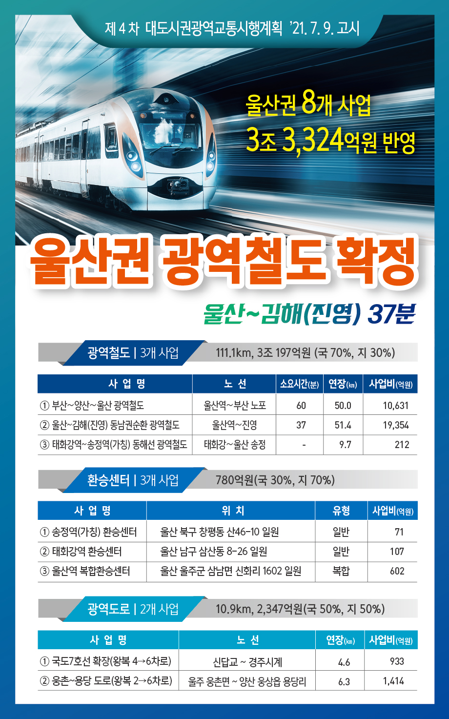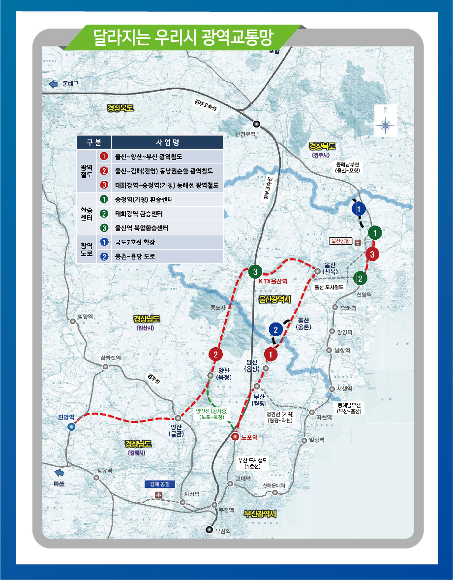 제4차 대도시권 광역교통 시행계획 고시('21.7.9.)울산권 광역철도(3개 사업), 환승센터(3개 사업), 광역도로(2개 사업)